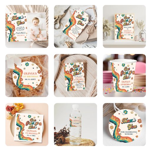 Groovy Baby Retro Rainbow Baby Dusche Party Foto Einladung