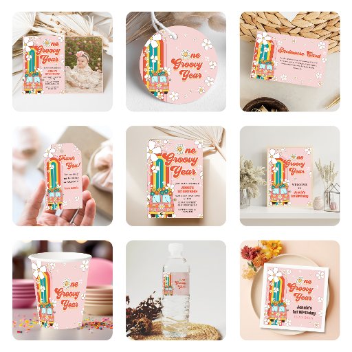 Groovy Girl Retro Rainbow Baby ShowParty Einladung
