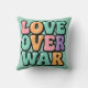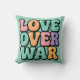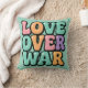 Fügen Sie Ihrem Wohnraum mit diesem Kissen "Liebe über Krieg" einen Farbtupfer und eine kraftvolle Botschaft hinzu. Das weiche Gewebe und das lebhafte, feine 70er-Bubble-Letter-Design sorgen für ein gemütliches Ambiente und ein friedliches Statement-Stück. Es ist der perfekte Akzent für ein Sofa, Stuhl oder Bett, ideal für diejenigen, die Liebe Nische Retro-Wohngestaltung und Förderung der Harmonie.