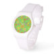 Groovy Mod Pop Blume Limon, gelb und orange lassen Sie auf diesem Retro-Gefühl sportlich weiße Uhr lächeln.