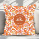 Groovy Retro Orange Florals Monogram Kissen