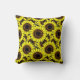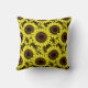 Kissen in einem Muster großer goldgelber Sonnenblumen, mit tiefen schokoladenbraunen Zentren, mit schwarzem Akzent