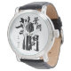 Uhr, Vintage Männeruhr mit schwarzem Lederarmband