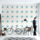 Hübsche Aquarellkunst mit einem hübsch blass-blassblauen und bräunlichen Seesternmuster auf weißem Hintergrund.