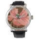 Große rosa Blume mit tiefrotem Hintergrund Armbanduhr