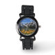 Uhr, Vintage Männeruhr mit schwarzem Lederarmband