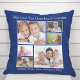 Feiern Sie die besten Großeltern mit diesem maßgeschneiderten, blauen Foto-Kissen mit einer 6-Foto-Collage ihrer Enkel, Familienmitglieder, Haustiere, etc., "I Liebe You" oder "We Liebe You", und wie sie angesprochen werden "Oma & Opa", "Mama Mama & Pop Pop," usw. Sie können auch die Namen der Enkel in eleganter weißer Typografie hinzufügen.