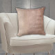 Ein individuelles Kissen, ein stilvolles und zeitgenössisches Geschenk für Oma! Das schöne Minimalskript in hellrosa zeigt die Namen Ihrer geliebten Enkel auf einem raffinierten Glitzer-Hintergrund aus Rosa und Gold-Imitaten. Dieser personalisierte Sake kann mit bis zu sechs Namen angepasst werden, wodurch ein herzliches und hochgeschätztes Memento entsteht. Ob auf einem Sofa oder einem Bett, dieses einzigartige Kissen bringt eine Touch Eleganz in jeden Raum. Feiern Sie die Liebe der Familie mit diesem exquisiten und sinnvollen Geschenk für Oma oder eine Mutter am Muttertag.