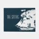 Hochschiff glatt segeln und eine schwindelerregende Wolke als Gesellschaft...perfekter Tag. Weiße Silhouette auf elegantem, dunkelblauen Hintergrund, Anpassen an Ihre Wünsche.