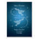 Eine Weihnachtskarte für Ihren Großvater. Zwei friedliche Tauben mit Olivenzweigen. Die Tauben werden mit vielen Weihnachtssymbolen und Schneeflocken gezeichnet. Die Tauben fliegen in einem blauen Himmel voller Sterne. Eine wunderbare Weihnachtskarte, die Ihr Urgroßvater willkommen heißen wird.
