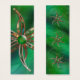Ein abstraktes Werk in hellgrün und kupfer. Ein klares grünes Schmuckstück ist umgeben von Kupferblättern aus Gras mit glitzernden Smaragden und orangefarbenen Sternexplosionen. Die schwellenden, kurvenreichen Fraktale im Hintergrund erscheinen in tiefgrüner, braun und orange im Kupferfiligrane des Blattmotivs.