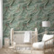 Grün, Creme, Seidenraupen und farbige Blume Tapete