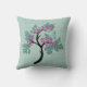 Fügen Sie Ihrem Zimmer einen beruhigenden Brennpunkt mit einem trendigen Kissen mit einem anmutigen asiatischen Blütenbaum in mintengrün mit Pflaumenfarben hinzu.