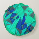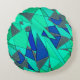 Grüne dreieckige Ausschnitte auf blauem Hintergrun Rundes Kissen