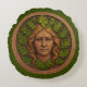 Eine grüne Frau, die in Holz gemeißelt wurde, mit Farbe, die auf die Eichenhaare und Blätter aufgetragen wurde. Passen Sie Ihren eigenen Text auf der Rückseite an. Auch bekannt als Laub-Kopf, der Grüne Mann/Wilder Mann, ist ein Motiv in Architektur und Kunst, ein Gesicht, das aus Blattwerk besteht oder vollständig umgeben ist und sich meist aus der Mitte des Gesichts ausbreitet. Abgesehen von einer rein dekorativen Funktion wird der Grüne Mensch als Symbol der Wiedergeburt interpretiert und repräsentiert den Zyklus des neuen Wachstums, der jeden Frühling auftritt. Der Grüne Mensch, der in vielen Kulturen aus vielen Altersgruppen der Welt gefunden wurde, ist oft mit natürlichen Pflanzenarten verwandt. Die weibliche Entsprechung des grünen Mannes wird oft als die grüne Frau oder die Sheela-Na-Gig bezeichnet. Diese Figuren, oft mit einer grünen Krone oder üppigen Haaren dargestellt, symbolisieren ihre Verbindung zur natürlichen Welt, sind mit Fruchtbarkeit, Natur und der Wildnis verbunden. In einigen Kontexten können die "Wilde Frau" oder das "Glaistig" (eine Art Seemeißchen in der schottischen Folklore) auch als weibliche Entsprechungen des grünen Mannes betrachtet werden, die verschiedene Aspekte der Natur und des Powers darstellen.