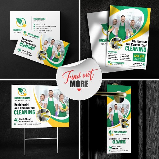 Mit dieser Vorlage für die Reinigung des grünen Gelben Hauses und die Zimmermädchenreinigung mit einer Visitenkarte können Sie Ihre kommerziellen Reinigungsdienste fördern. Mit einem sauberen und modernen Design mit individuell anpassbaren Farben und Platz für Ihr Logo, die angebotenen Dienstleistungen und Kontaktinformationen, können potenzielle Kunden Ihre Dienstleistungen sofort buchen. Perfekt für Hausreinigung, Büroreinigung, tiefe Reinigung und vieles mehr!