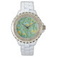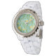 Eine wunderbare Damenuhr mit weißem Armband und grün-weiß-kariertem Ziffernblatt. Trägt sich ganz fabelhaft. Exzellenter Druck, sehr klare Farben. Schönes Design.