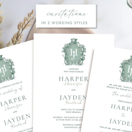 Feiern Sie Ihre Liebe mit unserer exquisiten, zeitlosen Hochzeitseinladung, bei der klassische Eleganz mit modernem Charme einhergeht. Diese Einladung enthält ein wunderschön verziertes Monogramm in üppig grünen Farbtönen, zentriert mit einem hellgrünen Hintergrund, der die Initialen des Paares hervorhebt. Das Design besticht durch zeitlose Eleganz, ergänzt durch stilvolle Formulierungen in einer Mischung aus handgeschriebener Kalligraphie und klassischer Typografie. Im hinteren Teil befindet sich eine zarte und romantische Aquarellkulisse in grünen Farbtönen, gerahmt von einer atemberaubenden Schmucktür, in der Paare ihre Monogramm-Initialen auswählen können. Als Teil unserer Kollektion "Timeless Elegance Green" verbindet sich diese Einladung nahtlos mit passenden Suitenartikeln und Veranstaltungspapier. Romantisch, elegant und einzigartig. Dieses Template ist einfach zu bedienen und für Paare gedacht, die eine Hochzeitseinladung wünschen, die so unvergesslich ist wie ihre Liebe. Verfügbar mit drei weiteren Backoptionen.