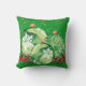 Grüne Ornamente und rote Beeren auf Grün Kissen