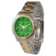 Die Armbanduhr dieser Männer hat ein geometrisches Design aus Dreiecken, die Quadrate bilden, die wie eine Vogelperspektive von Pyramiden aussehen.