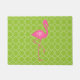 Eine Fußmatte, die eine Illustration eines rosa Flamingos über einem grünen quatrefoil Hintergrund kennzeichnet. Personifizieren Sie das Monogramm.