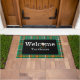 Erleben Sie Ihren Einstieg mit unserer bezaubernden, grün und orange karierten personalisierten Willkommensmatte, mit einem Golfball auf einem braunen Tee, der das O in Welcome ersetzt. Dress up your entryway mit einer Begrüßungstat zum Thema Golf. Das perfekte Geschenk für den begeisterten Golfer oder das 19. Loch Golfplatz Clubhaus.