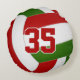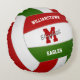 Dieses coole Volleyball-Rundkissenspiel in den Farben Volleyball und Rund-Kissen zeigt ein realistisch aussehendes rotes, grünes und weißes Volleyball, auf dem man den Spielernamen, Monogramm- oder Varianzbuchstaben, Mannschafts- und Maskottenname auf der Vorderseite und Trikotnummer auf der Rückseite - von katz_d_zynes