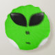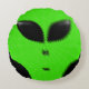 Grüner alien-Kopf-rundes Kissen. Cooles grünes alienkissen mit Grün plätscherte alienkopf mit zwei schwarzen Augen, zwei Punktnasenlöchern und gestreiftem Mund auf beiden Seiten. Ein großes grünes alienkissenneongeschenk für aus diesem Welt-UFO und Bereich 51 themed Geburtstags-Party des Extraterrestrial-alienbesuchers heraus!