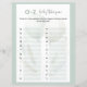 Das Baby Shower Game Sage Green Bear A to Z Baby Items ist eine lustige und einnehmende Aktivität, die jeder Babydusche eine spielerische Touch verleiht. Die Gäste werden aufgefordert, sich für jeden Buchstaben des Alphabets Babyartikel vorzustellen, was es zu einer unterhaltsamen Art macht, alle einzubinden. Das Spiel bietet eine charmante Bärenillustrierung in sanften Salbei-Grün-Tönen, perfekt für minimalistische oder geschlechtsneutrale Themen. Die schön gestalteten Spielkarten werden auf hochwertigem Papier gedruckt, sodass sie sowohl praktisch als auch stilvoll sind. Dieses Spiel ist einfach zu spielen und für Gäste jeden Alters geeignet. Es dient als perfekter Eisbrecher, der Lachen und Konversation fördert und gleichzeitig dauerhafte Erinnerungen schafft. Das einzigartige Design macht es auch zu einer reizenden Ergänzung Ihrer Babydusche Dekoration und Fotos. Für ein einheitliches Party-Look, paaren Sie dieses Spiel mit den passenden Sage Green Bear Baby Shower Dekorationen und Accessoires.