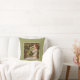 Throwkissen mit einer digital gesäuberten und erhöhten klassischen Malerei von John William Waterhouse, "Ophelia," ab 1894, gerahmt und zurückgezogen mit einem grünen Damastmuster.