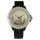 Uhr, Vintage Männeruhr mit schwarzem Lederarmband