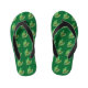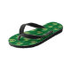 Ein lustiges Paar Flip Flops für Kinder mit dem Muster eines grünen Zickzack Kobolderhutes auf einem dunkelgrünen Hintergrund . © ArianeC Illustrationen