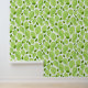Grüne weiße Basilika Verlasse handgezeichnete Muster-Tapeten für die Natur. Schönes grünes Blatt Muster auf weißem Hintergrund. Die Blätter sind lebendige grüne Basilika-Blätter.