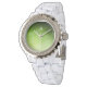 Eine wunderbare Damenuhr mit weißem Armband und grün-weiß-kariertem Ziffernblatt. Trägt sich ganz fabelhaft. Exzellenter Druck, sehr klare Farben. Schönes Design.