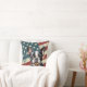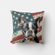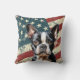 Ein wunderschönes Aquarellportrait eines niedlichen Boston Terrier Dog wird vor einem Grunge Hintergrund der US-Flagge platziert. Beide Seiten des Kissens haben das gleiche Bild.