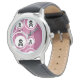 Uhr, Kinderuhr aus Edelstahluhr mit lila Lederarmband