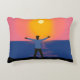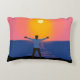 Gruß an die Sonne. Ein Mann ist an einem Strand stehend, der zum offenen Meer hin ausgerichtet ist und die gelbe Sonne mit aufgehauchten Armen salzt.