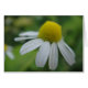 Eine grosse, wachsende Kamillüte mit schön gemustertem gelben Blütenzentrum und sieben weissen Blütenbündenblät vor Grünenblüte mit dieser Grussenkarte. Die ist Deco.