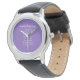 Uhr, Kinderuhr aus Edelstahluhr mit lila Lederarmband