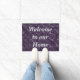 Willkommen in Ihrem Haus, Zuhause oder Sommerresidenz mit dieser königlich lila Begrüßungstat. Der Hintergrund ist mit einem subtilen Porenmuster und "Welcome to our Zuhause" versehen, das leicht und schnell an Ihre Bedürfnisse angepasst werden kann.