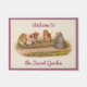 Vier Gartenschweine verwenden Guinea- und Heuschrecken, während sie zu ihrem Gemüsegarten tendieren, von einer Aquarellmalerei von Beatrix Potter. Persönlich mit einer einladenden Nachricht an die Gäste in Ihrem "geheimen Garten" oder Zuhause-Straßenadresse mit Schriftzeichen in Rose rot mit einem entsprechenden Rand.