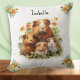 Ein hübsches Kissen mit einer niedlichen Aquarellmalerei einer Familie von Guinea Schweinen, und Blume in jeder Ecke. Personalisieren Sie sich mit einem Namen, der über dem Guinea Schweine-Bild erscheint, in einem einfachen und modernen Schriftart. Die Rückseite des Kissens ist schlicht weiß.