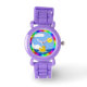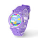 Uhr, Kinderuhr aus Edelstahluhr mit lila Lederarmband