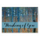Das Werk basiert auf klassischen Naturmalereien von Gustav Klimt, Beech Grove 1, 1902. Das Kunstwerk zeigt einen dichten Wald von hohen, schlanken Birkenbäumen mit blassfarbenen Stämmen, die von dunklen, senkrechten Linien gekennzeichnet sind. Das Blätterdach ist in Blau-, Grün- und Gelbtönen dargestellt und verleiht der Szene ein Gefühl von Tiefe und Lebendigkeit. Der Waldboden ist mit orangefarbenen und braunen Blätter bedeckt und bildet einen auffallenden Kontrast zu den leichteren Baumstämmen. Die Gesamtkomposition verwendet pointillistische und impressionistische Techniken, die dem Bild ein lebendiges, texturiertes Aussehen verleihen. Die Vertikalität der Bäume betont die ruhige und rhythmische Struktur des Waldes.