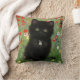 Kissen mit einem Gustav Klimt Kitten! Dieses schwarze Kätzchen trägt einen silbernen Kragen und sitzt in einem Feld aus roten, blauen, weißen und gelben Blumen. Ein wunderbares Geschenk für Katzenliebhaber und österreichische Kunstliebhaber!