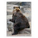 Grizzly Bär sitzt rückwärts auf einem Felsen für General haben einen guten Tag.