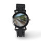 Uhr, Vintage Männeruhr mit schwarzem Lederarmband
