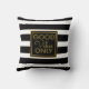 Des Zitatkissens des modernen, adretten Schwarzweiss-Streifens inspirierend Streifenhintergrund der traditionellen Art klassischer Schwarzweiss-. Zentriert eine Goldfarbe, motivierend Zitat, das "guten Vibes nur" in der Goldfarbe liest, im Chicbeschriften gerahmt innerhalb eines Schwarzen und im metallischen Quadrat des Imitats Gold. Identisch auf beiden Seiten. Spaß, aber klassischer Dekor im Freienfür ein Strandhaus, Sommerferien-Zuhause, Seehaus oder Kabine im Holz oder einfach in Ihrem eigenen Hinterhofpatio- oder -plattformdekor. Niedliches Geschenk für jugendlich Mädchenschlafzimmerdekor. Nicht gerade für Freien, können Sie dieses Schwarzweiss-Kissen in den verschiedenen Größen und in den Stoffwahlen für ein modernes Schwarzweiss-Schlafzimmer oder inspirational einen Wohngestaltungakzent erhalten.