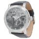 Uhr, Vintage Männeruhr mit schwarzem Lederarmband