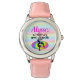 Kinderuhr aus Edelstahl mit rosa Lederarmband